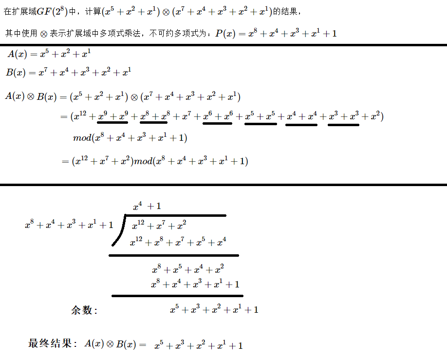 为了处理扩展域,我们就要使用不同的符号表示扩展域内的元素,使用不同的规则执行扩展域内元素的算术运算。