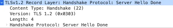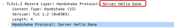 随后,就是「Server Hello Done」消息,服务端跟客户端表明:“这些就是我提供的信息,打招呼完毕”。