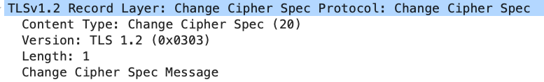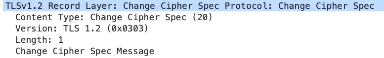 生成完会话密钥后,然后客户端发一个「Change Cipher Spec」,告诉服务端开始使用加密方式发送消息。